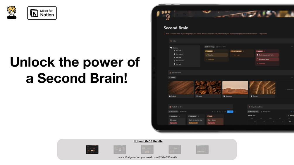 Unlock the power of a Second Brain with this powerful yet easy to use Notion template